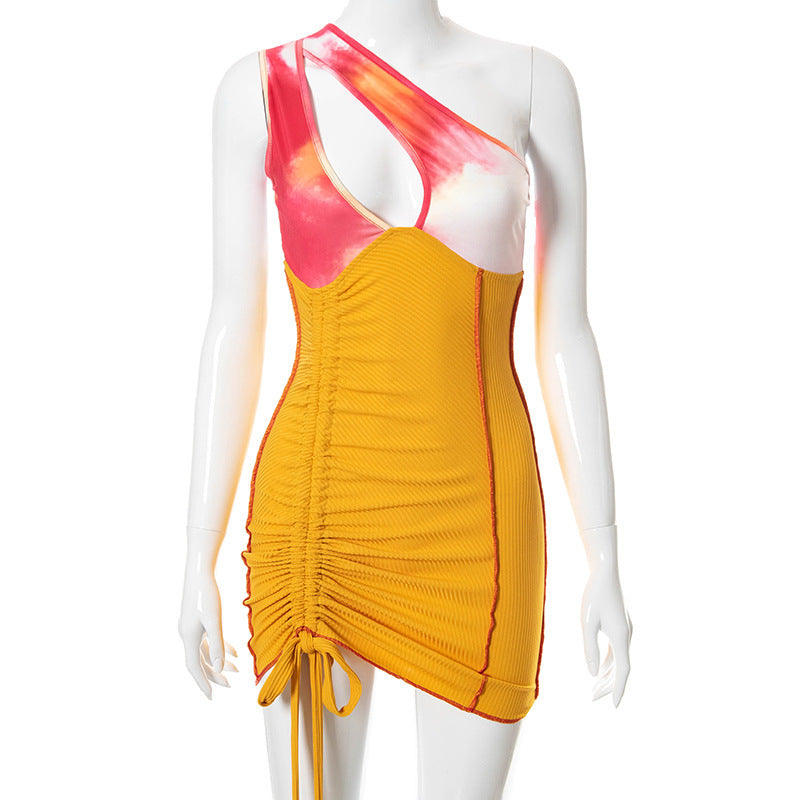 Brisa | Women'S Asymmetrical Mini Dress With Colorful Gradient And Ruffles
