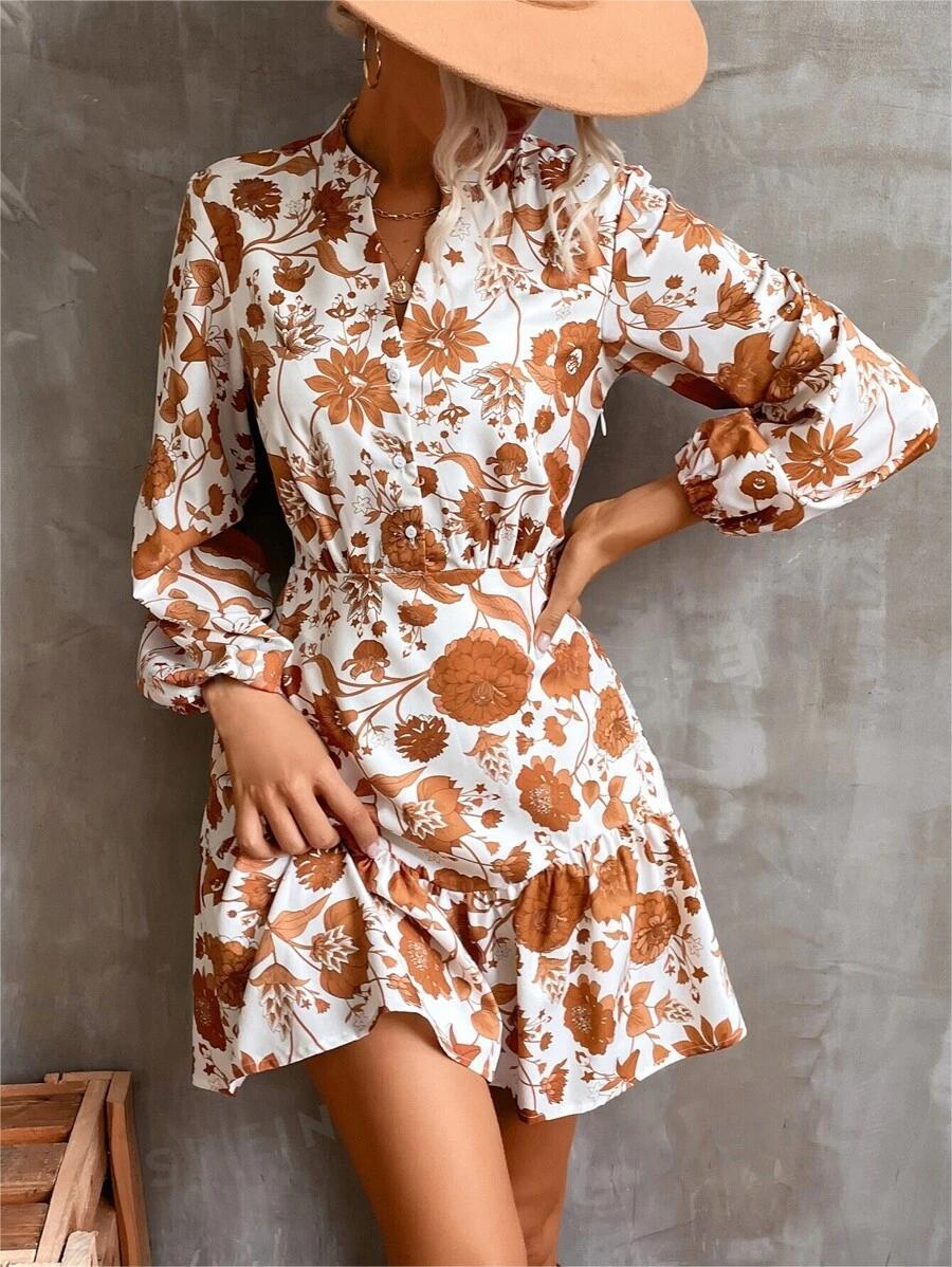 Gitana | Women'S Floral Print Casual Dress With Button Placket And Gathered Hem