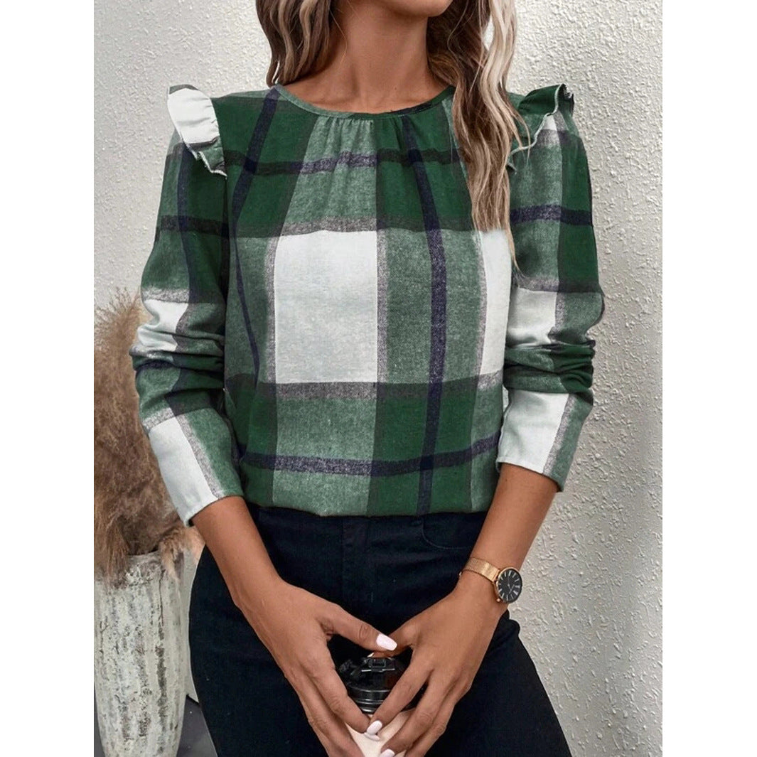Jara | Women'S Blouse With Ruffle Details And Checked Pattern