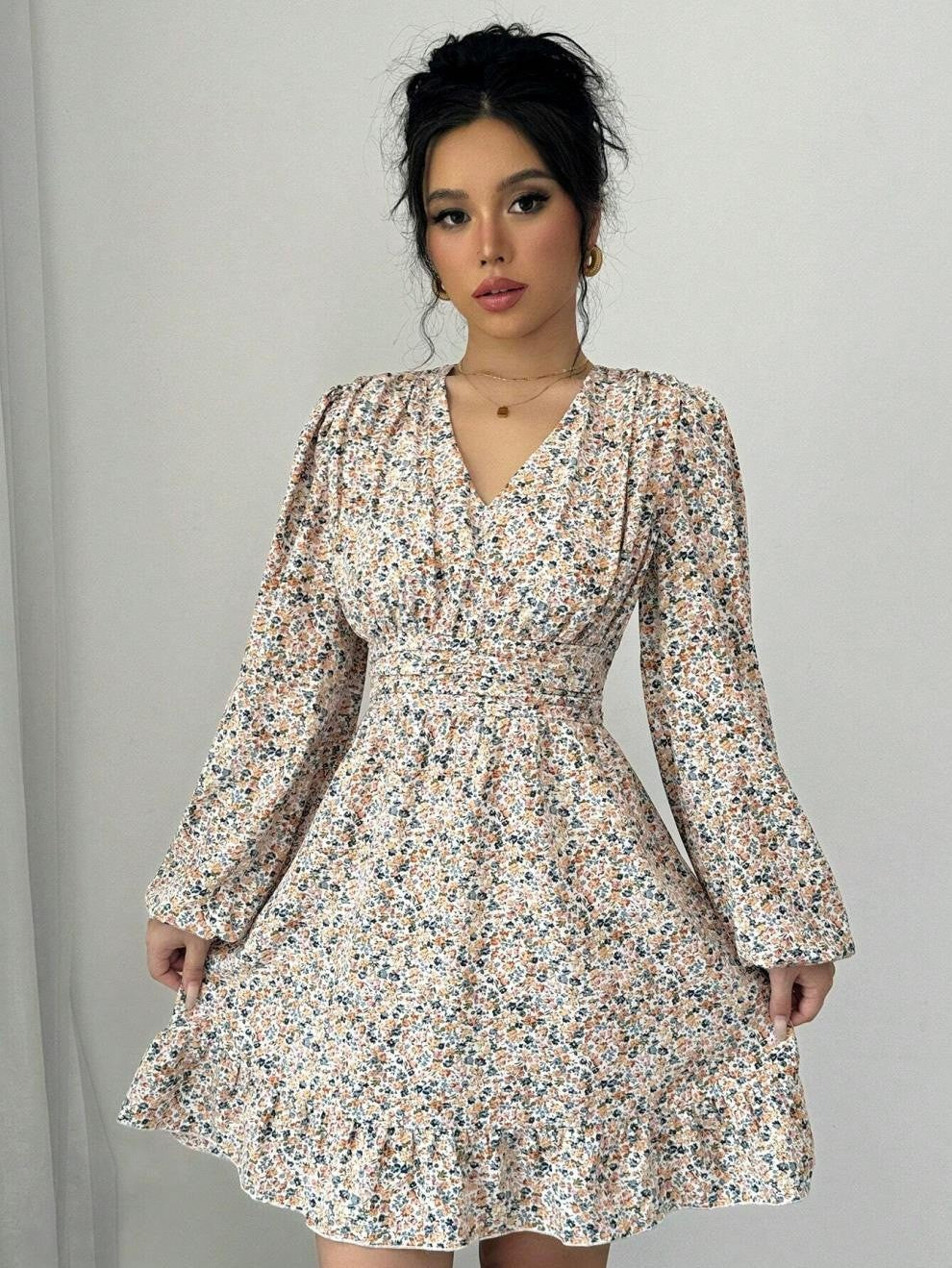 Quintina | Women'S Floral Dress With V-Neck And Ruffle Details
